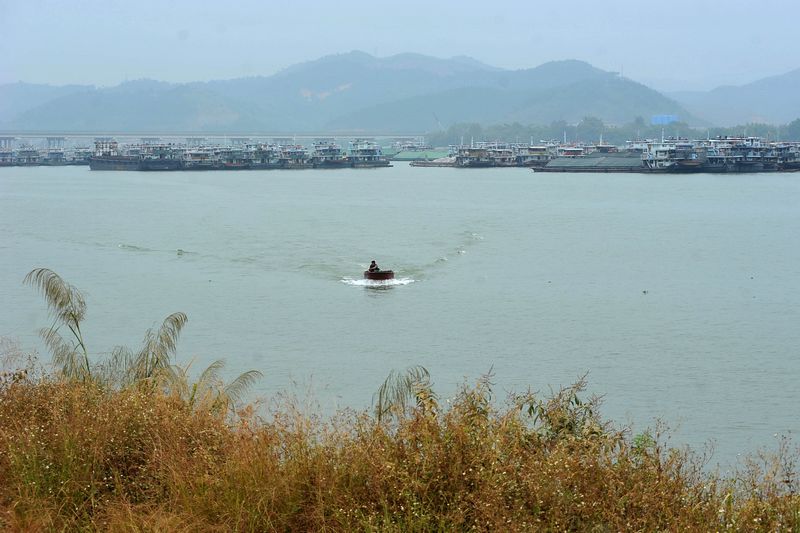 ? 11月4日,滯航船只船員乘搭小艇到岸上采購生活用品。據梧州航道管理部門消息,受上游來水較少等客觀原因影響,截至當日16時,在長洲水利樞紐上、下游滯航的船只數量達623艘。16時樞紐船閘下游水位僅4.56米,水位走勢平穩(wěn),雖然離3.07米的開航最低水位尚有距離,但通航形勢依然嚴峻。目前長洲水利樞紐1、2號船閘24小時通航,全力對滯航船只進行疏導。 西江都市報記者 何鎏/攝