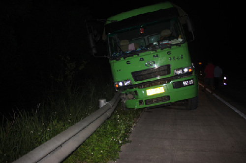 圖中的貨車駕駛員因疲勞駕駛,撞向高速護欄。