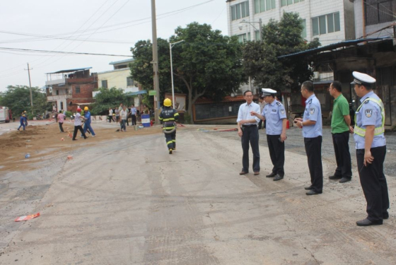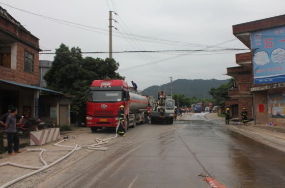 ??? 梧州零距離網(wǎng)訊(記者 覃燕霞 通訊員 鐘魁華)5月12日中午,梧州市南岸高旺路中段一吊車與一裝滿36立方柴油的油罐車相撞,油罐車發(fā)生泄漏,附近幾十戶民房受到威脅,情況危急。經(jīng)公安、交警、消防等多部門聯(lián)合處置,于當(dāng)日下午15時(shí)30分解除威脅,恢復(fù)南岸交通。