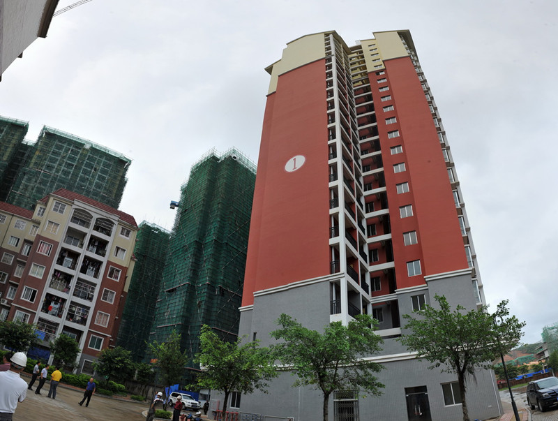 ??? 6月21日,在桂梧高速公路入口的廉租房小區(qū),一幢幢廉租房拔地而起。