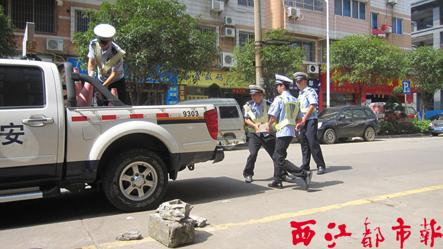 ????西江都市報訊 (記者 楊珊 實習生 李旻華 通訊員 陳選平) 商家利用各種障礙物占用公共停車位,“專供”到該店面消費的客人停車,這樣的現象近來在梧州市有愈演愈烈之勢。7月29日,梧州市公安局交警支隊長洲大隊派出執法小組,對轄區內商家私占車位的違法行為進行專項整治,同時強制清除占道障礙物,還位于民。