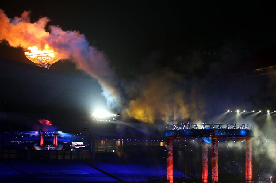 21時49分,激動人心的主火炬點燃儀式開始。在過去4個多月里,取自希臘奧林匹亞的青奧圣火經過實體和網絡虛擬傳遞,先后在204個國家和地區進行傳遞,歷經太空、深海和南極,最終抵達南京奧體中心體育場。