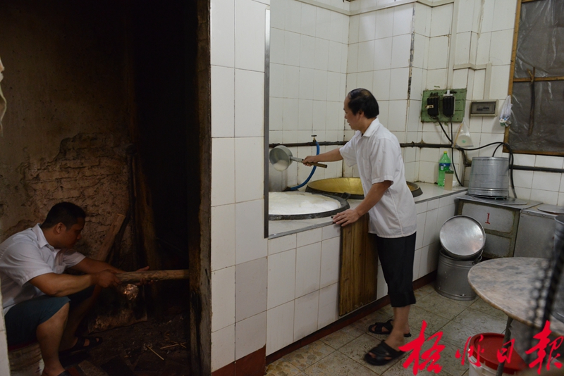 冰泉豆?jié){館至今保持燒柴煮豆?jié){的傳統(tǒng)制法
