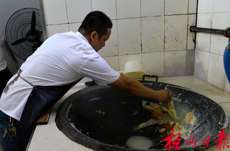 ????當(dāng)然,要實(shí)現(xiàn)香、滑、濃三者兼得,在豆水比例上還是非常講究。鄧釗波曾被邀請(qǐng)到湖南衛(wèi)視《天天向上》節(jié)目,現(xiàn)場(chǎng)他揭秘了冰泉豆?jié){的絕殺武器,“一般的豆?jié){店,一斤黃豆可以磨出15斤豆?jié){,在梧州冰泉豆?jié){館,一斤黃豆只可以磨出七八斤,比一般豆?jié){濃度高一倍。”真材實(shí)料與精工細(xì)作,是冰泉豆?jié){美譽(yù)80載的堅(jiān)持之道和生存之道。
