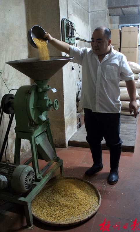 把大豆倒進(jìn)脫皮機(jī)去皮,是制作豆?jié){第一步。
