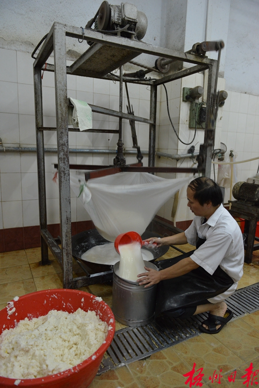 有十年工作經(jīng)驗(yàn)的歐師傅正將打好的豆?jié){隔漿過(guò)濾,這一關(guān)鍵環(huán)節(jié)直接影響著豆?jié){口感的好壞
