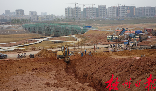 ????1月6日,記者在園博園建設現(xiàn)場看到,園區(qū)土地平整、道路鋪設及多個景觀區(qū)的基礎設施建設等同時展開作業(yè),幾十臺鉤機、推土機、吊機及數(shù)量眾多的運輸車輛忙碌運作,幾百名施工人員分布在各個點上按步有序工作。入口區(qū)的跨湖橋上,施工人員抓緊給橋體進行裝修和保養(yǎng);橋的兩邊,施工人員在搭建和加固親水棧道;景觀規(guī)劃區(qū)內(nèi),施工人員在鋪沙石、砌擋土墻、搬景觀石;設計為12米寬的主道路濱湖東路橫穿整個園區(qū),已基本完成級配層施工。