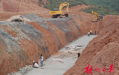 參加環(huán)保直通車活動(dòng)的梧州日?qǐng)?bào)社黨員志愿者,在長(zhǎng)洲區(qū)倒水村進(jìn)行義務(wù)植樹。記者 何鎏/攝