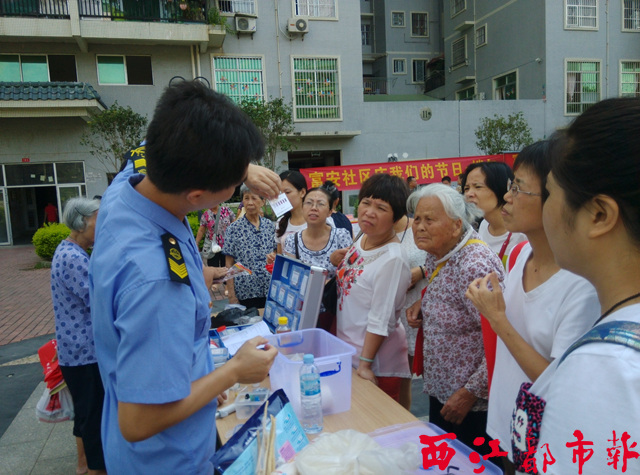 ????西江都市報訊(記者 陳素雅 通訊員 李婷婷)“無論您在哪里購買帶有包裝的食品,都要看好包裝上的標簽和生產(chǎn)日期,如果印刷字體模糊,缺少生產(chǎn)廠家等信息,基本可以斷定為假貨。”6月18日,富安社區(qū)食品安全周啟動儀式暨廣場活動在富安小廣場舉行。梧州市食品藥品監(jiān)督局及萬秀區(qū)食品藥品監(jiān)督局、市科協(xié)及城區(qū)科協(xié)、富民辦事處等部門的工作人員,通過擺放宣傳展板,設立宣傳展臺、咨詢臺等方式,為社區(qū)居民講解選購食品的“竅門”及辨別偽劣食品的方法,增強市民的食品安全意識。