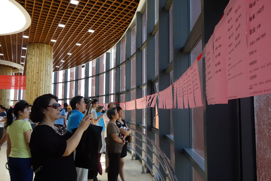 不少家長當軍師幫自己的兒女或者親戚挑選對象。  一位男會員現場表演十指俯臥撐助興。 ??? 7月11日,天氣晴好。一大早,許多參與“我們相親吧·第六季”活動的男女會員都來到了梧州日報社,統一坐車到第六屆廣西園博園游客服務中心,在風景旖旎園博園內,尋覓自己人生的另一半。 ????積極主動 才有機會 ????11日當天上午,在第六屆廣西園博園游客服務中心人頭攢動。400名參與由梧州零距離網主辦的“我們相親吧·第六季”活動的會員紛紛到工作人員處簽到,領取號碼牌。一些被人流吸引而來的園博園游客,同樣對活動表示了濃厚的興趣,希望能夠參與。 ????為了讓現場氣氛活躍起來,不少男會員挺身而出,有的表演十指俯臥撐,有的在按摩板上跳繩,也有男會員借麥克風進行自我介紹,吸引注意。周強便是其中一個。 ????“我叫周強,在本市工作,現在代理六堡茶。如果大家有興趣,可以交個朋友,一起喝個茶,吃個包。”上場后,周強幽默詼諧而又自信滿滿的自我介紹,讓大家對這個藍衣服的男青年十分感興趣。 ????周強告訴記者,參加相親會,只有積極主動,別人才會關注你,你才有機會認識更多朋友。“今天這個活動,我把它當做一個平臺,以此認識更多的異性朋友。只有深入交往了,才會知道大家是否合適。”周強說。記者留意到,周強進行自我介紹后,許多家長、女會員都主動找到了他,留下了聯系方式。 ????會員靦腆 親友出動 ????相較于男會員的主動,當天的部分女會員們似乎比較靦腆,她們的親友團,便成為她們的“代言人”。當天陪同事一起來的黃小姐,便成了同事的“代言人”。黃小姐告訴記者,同事是南寧人,在梧州工作,為人比較害羞。來到現場后,雖然也有一些合眼緣的,但卻不敢上前問聯系方式,只好由她代勞。 ????有些親友團成員干脆直接做“軍師”。今年25歲的陳春燕是一所小學的教師,此外還兼職開了一家服裝店。因為日常工作較為忙碌,年輕貌美的她至今還是單身。問及擇偶條件,陳春燕并沒有高要求:“經濟獨立,顧不顧家……也沒什么的?!辈涣洗嗽拕傉f完,一旁的陳春燕媽媽便反駁:“男人怎能不顧家,一定要顧家?!标惔貉嘈α诵?,雖說媽媽是親友團來為自己壯膽的,但現在看來更像是軍師,意在為她挑個好青年。 ????4050專場 更需互動 ????當天的相親活動還專門開辟了“4050專場”,為一些中老年人尋找伴侶。據梧州零距離網的工作人員介紹,以往幾屆,他們都收到過一些中年人的報名,且也不在少數。考慮到這些年齡段的群體的實際需求,因此,本次相親活動就專門準備了一個場地,通過三分鐘快速輪流交流的方式,為這個年齡段的會員提供機會。 ????在“4050專場”內,男女會員一對一坐下后,大家先是了解對方的基本情況,然后互留聯系方式。三分鐘后,女會員便與下一名男會員再進行交流。參與此次“4050專場”的張先生今年51歲,他認為,三分鐘面對面的交流方式,一來時間有點短了,二來大家素不相識,突然坐到一起聊天,有點尷尬?!拔覀冞@個年齡段中年人,都比較怕尷尬。萬一坐下來不合眼緣,就不知道說什么了?!睆埾壬J為,如果下次再有這種專場,可以通過一些如舞會的活動形式,在輕松一點的環境下交流,效果更佳。 ????據悉,如若男女會員在“我們相親吧·第六季”活動中,記錄了自己比較中意的會員編號,可在7月13日登陸梧州零距離網查詢相關的會員信息。每位會員可以查詢10名其他會員的信息。 ????記者 謝韻 文/攝 |