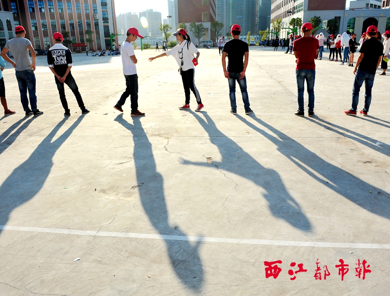 10月16日下午,烈日當空,梧州職業學院數百名學生在導演和工作人員的指揮下,在操場上按照節目編排的要求快速找到自己的站位,排好隊形。