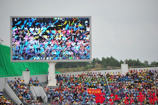 現場直播畫面出現在中恒體育場左右兩側的大型電子顯示屏上,令上鏡的觀眾興奮不已。