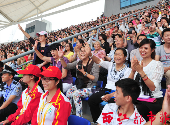 ????對于喜好攝影的市民張先生而言,這是一個值得留念的日子。整場開幕式活動中,他相機的快門幾乎沒有停過。當記者表示要采訪他的時候,他也提出希望能等他拍完照片后再接受采訪,生怕錯過什么精彩瞬間。“我最喜歡有鴛鴦江的那個節目,因為它最能表現梧州特色。”張先生說,作為一名老梧州,第一次在家門口的大場館,看到這么多具有梧州特色的大型表演,他被場面震撼的同時,也倍感親切、自豪。家鄉的歷史和韻味,能夠通過精彩的表演,展現在全區人民的面前,張先生為自己是梧州人而驕傲。