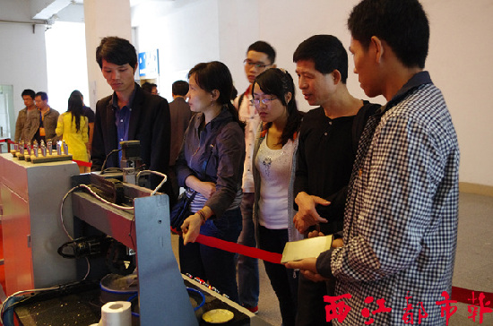 ????與會(huì)人員參觀梧州學(xué)院與企業(yè)一同研發(fā)的寶石加工自動(dòng)化一體教學(xué)機(jī)。據(jù)悉,該教學(xué)機(jī)能將設(shè)計(jì)圖紙通過軟件轉(zhuǎn)化成數(shù)據(jù),以供機(jī)器進(jìn)行制作。謝韻/攝