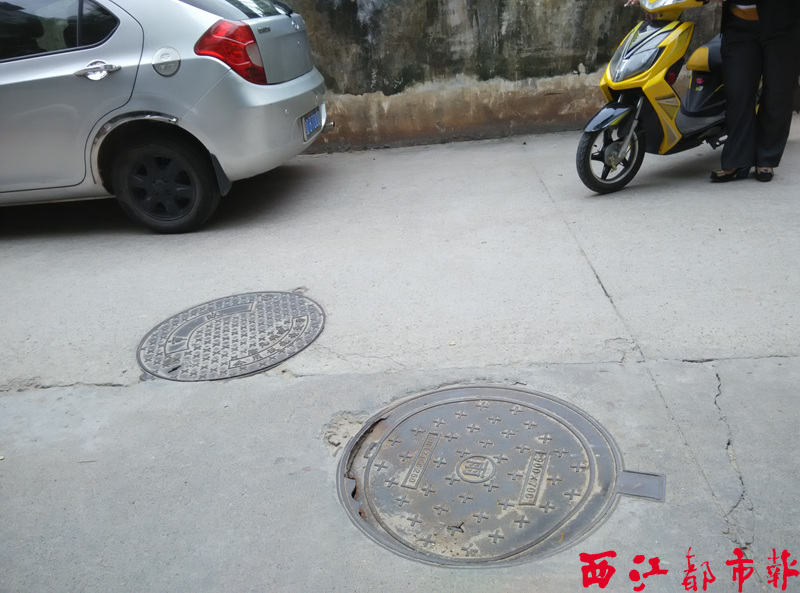 ????近日,記者和幸福社區的工作人員到現場了解情況,在芝麻城小區側門小巷道路中間發現兩個沙井蓋,一個清楚地寫著“市政”兩個字,另一個上面寫著“雨”字,而出現嚴重下陷破損的就是“雨”字沙井蓋。社區工作人員告訴記者,當時接到芝麻城物業多次反映后,社區工作人員曾到現場了解情況。小區物業說這條道路是芝麻城小區的出入車道,但是道路上的沙井蓋并不屬于他們管理。