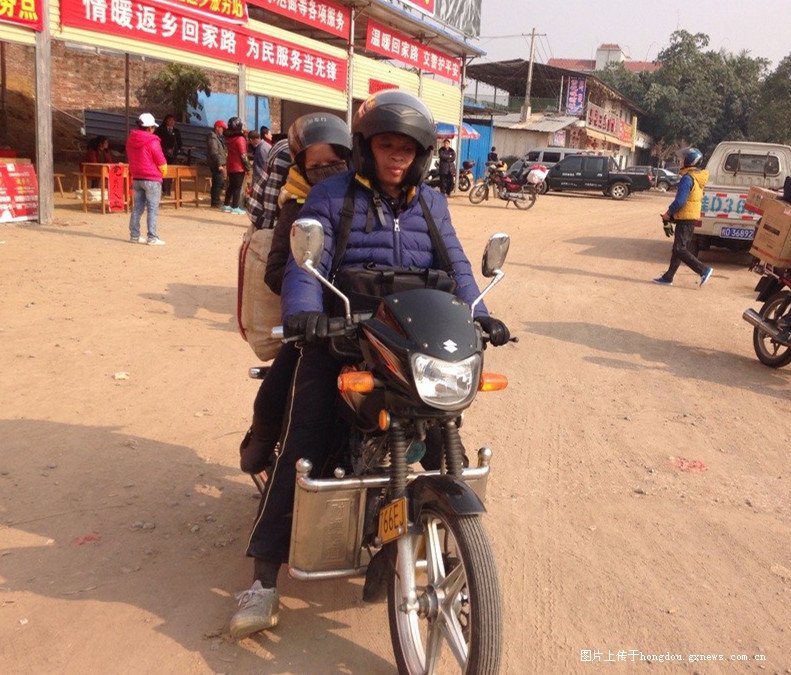 2016年1月24日上午10時左右,廣西梧州藤縣春運服務站迎來了第一輛返鄉摩托,騎乘這輛摩托車返鄉的是南寧上林縣的黃錦龍夫婦。在服務站里等著的,都是與黃先生夫婦約定“不見不散”的交警和網友志愿者。
