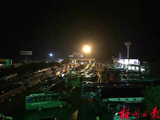 ????今年,我市公安交警等部門繼續(xù)執(zhí)行上級出臺的凌晨2時至5時大客車禁行政策。執(zhí)勤民警介紹,1月31日凌晨過后,一輛輛長途客運班車陸續(xù)進(jìn)入蒼郁高速公路大坡服務(wù)區(qū)停車休息,至2時許,本來只能容納50輛大型客車的服務(wù)區(qū)停靠了近100輛,把服務(wù)區(qū)和輔道全部塞滿,停車休息的乘客4500多人。