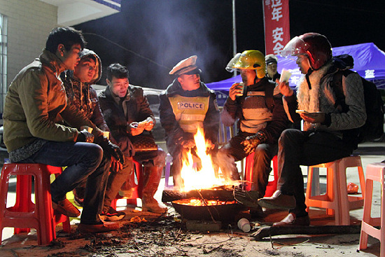 ????記者了解到,考慮到“摩托大軍”長時間在寒冷的天氣下行駛,手腳十分僵硬,目前,梧州市的多個春運服務站已經開始提供取暖器和炭火,讓“摩托大軍”可以取暖驅寒、活動手腳。