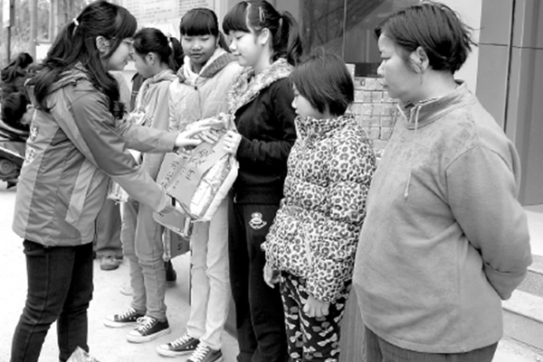 據(jù)長(zhǎng)洲鎮(zhèn)政府工作人員介紹,當(dāng)天受助的21 戶(hù)困難兒童家境都是比較貧困,有些是單親家庭,有些是父母患病,勞動(dòng)能力較差。記者在現(xiàn)場(chǎng)了解到,其中一名困難兒童叫李棟泳,今年12 歲,是長(zhǎng)洲中學(xué)初一的學(xué)生。父親因中風(fēng)癱瘓了,母親在2012 年查出患有宮頸癌并做了手術(shù),病情得到緩解,但未能根治,由于飲食營(yíng)養(yǎng)跟不上,平日身體、精神狀況都比較差,李棟泳還有四個(gè)姐姐,李家的經(jīng)濟(jì)來(lái)源主要靠親朋接濟(jì)和政府低保。獲悉網(wǎng)友們的關(guān)心和捐贈(zèng),李棟泳母親表示十分感謝,臉上洋溢著微笑。