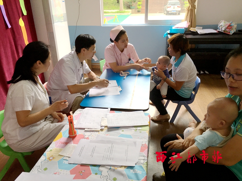????圖為醫(yī)護人員在詢問孩子的基本情況。