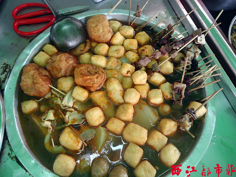 ????經過了解,肖女士認為本地人口味偏咸,所以在配料方面也下了不少工夫。這些配料都是用蒜蓉、豆豉、辣椒等按照一定比例自制而成,因為之前經營過飯店,因此比例多少、煮的時間多久,肖女士都已經駕輕就熟。精心熬制的新鮮牛肚、牛腸、牛脆骨、牛筋、油豆腐、蓮藕、肉丸等盛上碗,再加上自制的配料,或酸辣或咸辣,讓人垂涎三尺。