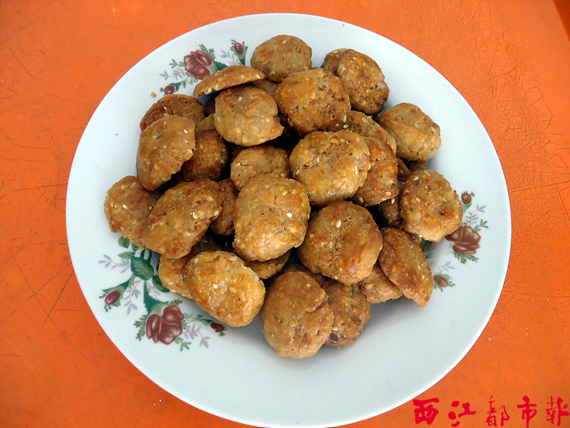 ????據何先生介紹,雞仔餅最考究的地方在于冰肉,先用白糖腌制新鮮豬肉,然后放在冰箱里冷藏4~5天,“沒有豬肉餅就不香,用新鮮的又會跟粉黏成一團,所以選用冰肉是最好的,這也是我們的特色所在。”何老板說,他從1990年開始做雞仔餅,到現在整整26年。從揉粉做餅皮到放陷做成大小勻稱的雞子餅,再到烘焙,每一道工序都是經過不斷摸索改良過來的。