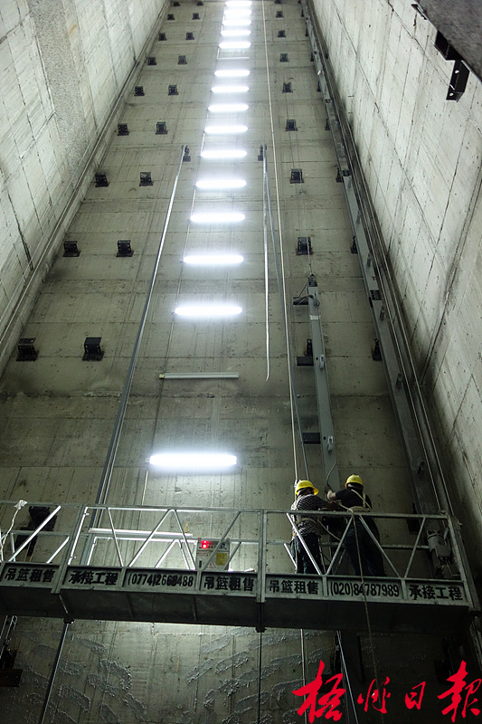 ????6月12日,工人在超大金暉立體停車樓內安裝用于傳送汽車的垂直升降電梯。