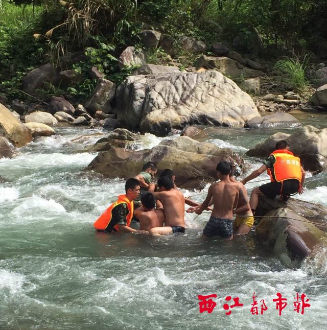 據(jù)了解,涉事男孩約14歲,他在小溪上游游泳時,水流湍急,整個人被水沖到下游,右腳不慎被卡在河流的石頭縫中。消防官兵趕到現(xiàn)場后,迅速用繩索對男孩進(jìn)行保護(hù),并跳入河流中,抱住小孩進(jìn)行保護(hù),還冒著被急流沖走的危險,用手動破拆工具緊急救援。湍急的水流給救援行動帶來很大的困難,消防官兵一邊緊張救援,一邊穩(wěn)定被困小孩的情緒,時刻關(guān)注他的身體狀況。