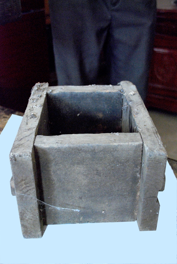 六堡鎮黑石村傳統制茶工藝中壓制茶餅時使用的餅印模具(記者 楊麥/攝)