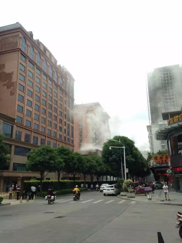????網(wǎng)友發(fā)來(lái)的照片顯示,江濱酒店后座處冒出濃濃白煙。