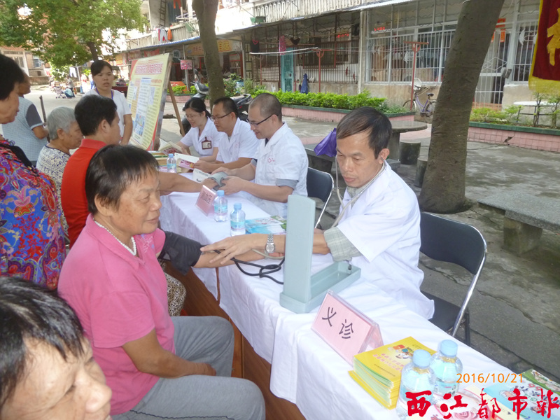 10月21日,醫務人員在義診活動中為群眾免費測量血壓。