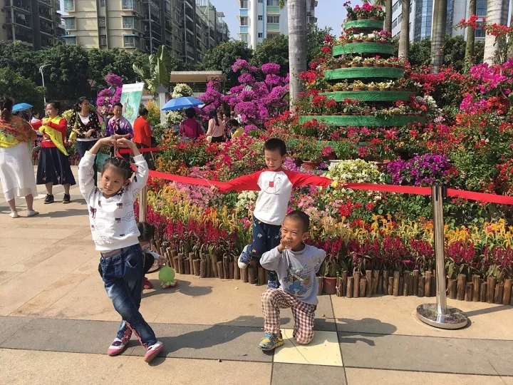 ???一位正在和家人拍照的黃阿姨告訴零妹,她家就住在市政廣場附近,每年寶巾花展她都會叫上親戚朋友一起來賞花拍照?!翱粗鴮毥砘ㄕ挂荒瓯纫荒贽k得好,作為市民的我除了感到高興,還很自豪,因為我們的梧州更美了!”