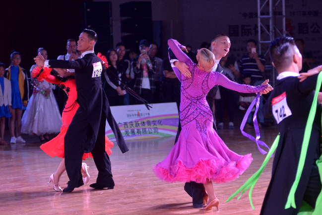 等待上場的選手緊張地觀看著場上的比賽。????本次比賽是梧州市首次舉辦國際級別體育舞蹈比賽,許多市民早早就趕來“霸頭位”。今年62歲的胡昂林與妻子黃盛梅連續(xù)兩天來到現(xiàn)場,觀賽后的他表示眼界大開:“我退休后就開始與妻子一起學習標準舞,但都只是學了點皮毛,這次特地來向舞蹈高手們取經(jīng)。”  常青組選手舞姿優(yōu)雅。????體育舞蹈跨越國界,國際公開組比賽匯聚了不同國家的舞者,最受觀眾矚目。在國際公開組比賽上,來自馬來西亞、越南、泰國、菲律賓等國家的舞林高手與中國體育舞蹈國家隊、國家青年隊的精英舞者同臺比拼。 國際公開組拉丁舞項目的參賽選手多為專業(yè)舞者,舞姿激情無比,成為全場比賽亮點。?? 來自澳大利亞的選手(右)和來自泰國的選手(左)同場比賽。?????各國舞者濃妝艷抹,舞蹈過程中走位準確,各式動作收放自如,就連表情都表現(xiàn)得恰到好處。跳桑巴時熱情奔放,跳華爾茲時含情脈脈,跳恰恰時神采飛揚……參賽舞者們與搭檔眉目傳神,一連帶來倫巴、桑巴、狐步、華爾茲等十個舞種,讓在場觀眾大呼過癮。 選手花哨的舞姿,高難度的動作令現(xiàn)場觀眾大飽眼福。????體育舞蹈不受年齡的限制,年幼的舞者和年長的舞者都能在這個賽場上展現(xiàn)自己的魅力。早上的賽程以兒童選手為主,俏皮可愛的小舞者們展示了倫巴、恰恰、桑巴等舞種,嬌小的身軀演繹出獨特的舞蹈風格,天真的笑臉“萌動”全場。“跳得很爽!看得也很爽!”今年8歲的張欣蕊與父母特地從柳州趕來參賽,走下賽場的她意猶未盡。張欣蕊的母親王女士說:“我十分支持孩子多參與比賽,多結交朋友,讓他們增加對舞蹈的認識與興趣,而不是刻板地學習技巧。” 小選手放飛情緒享受比賽。 淡定的裁判和投入的小選手形成有趣對比。 ????經(jīng)過兩天的比賽,2017年中國-東盟國際體育舞蹈公開賽各項組別決出了名次。但讓參賽者和觀眾久久不能忘懷的,是一場體育與藝術結合的舞蹈盛會,是舞者們精心裝點妝容、盡情揮灑的比賽過程。 (西江都市報 記者 鄧發(fā)浩/文 何鎏/攝)?
