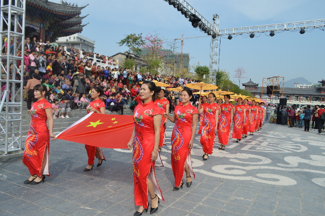 ??? 11月4日,蒙山、昭平和鹿寨三縣的旗袍愛好者齊聚蒙山縣城湄江河兩旁,開展一場精彩的旗袍走秀表演。