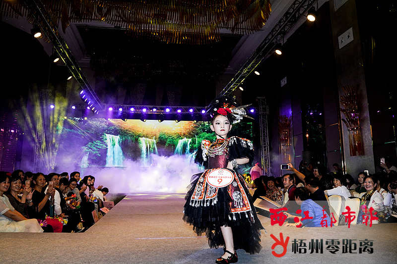 身穿古裝服飾的選手盡顯華服雍容華貴。 首先登場的是17位少兒組選手,他們帶來了苗族、藏族、朝鮮族等民族服裝的展示。選手們年齡雖小,卻臺風十足,舉手投足間盡顯自信。