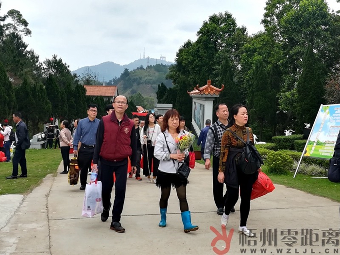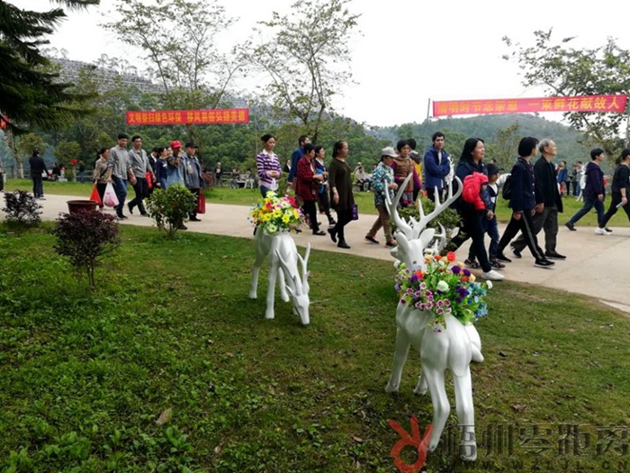 市民攜帶鮮花等物品進園祭掃。 仙風山墓園業主單位梧州市祥和實業有限公司經理鄧宇告訴記者,近年來市民都傾向于錯峰祭祀,不再集中在某一天或某一時段進行祭掃。以清明節當天為例,早上7時就有市民進園祭掃了,“雖然清明節全天的人流量仍是一年當中最高的,但不會出現非常擁擠的情況,各時段的人流量比較平穩?!编囉钫f。根據仙風山墓園初步統計,清明節當天祭掃人數超過5萬人。 當天,記者發現仙風山墓園內道路增設了綠化帶和動物雕塑群組,栩栩如生的動物雕塑還吸引了不少市民特別是小朋友駐足合影。鄧宇表示,為配合自治區民政廳發起的“綠色清明”主題宣傳,仙風山墓園通過動物雕塑、鮮花裝飾等營造綠色祭祀的環境氛圍。同時,為減少爆竹的燃放,墓園工作人員組成巡查隊,分別進入墓區巡邏,一旦見到有燃放爆竹的現象,會立即進行勸導。