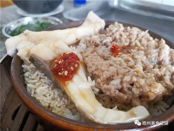 魚腩肉餅蒸籠飯 食客“乖乖仔”:這家店的蒸籠飯不油膩,也不偏咸,點睛之筆是店家自制的辣椒醬,很有桂林風(fēng)味。由于米飯和配菜的味道較清淡,因此重口味的我很喜歡把這些辣椒醬一起拌飯吃。