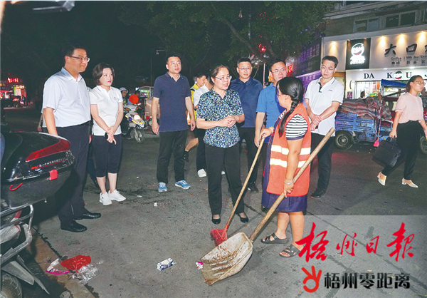 梧州零距離網-梧州日報訊(記者 梁萍 陳素雅)7月13日,市委書記全桂壽、市長鐘暢姿分別率隊檢查“臟亂差”整治情況,督促各城區、各部門單位以我市向“臟亂差”宣戰大行動為契機,揪住問題不放,持續加大整治力度,推動城市環境有所改善、城市管理更加精細化。