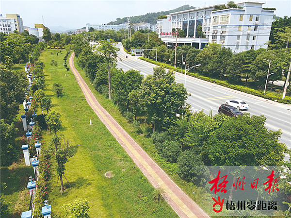 8月22日,在梧州高新技術(shù)產(chǎn)業(yè)開發(fā)區(qū)工業(yè)大道旁,路邊的綠化區(qū)和人行綠道隨著公路延伸,如同一條綠色的紐帶。經(jīng)過了多年的規(guī)劃種植和養(yǎng)護(hù),工業(yè)大道沿線已經(jīng)形成了比較完整的綠化體系,行道樹、低矮灌木、草坪、綠道完備,無論是行車還是步行,綠化景觀都令人賞心悅目。 記者 何鎏 攝