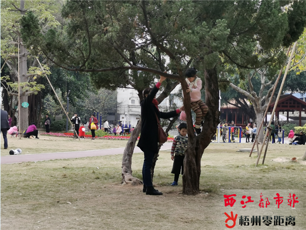 梧州零距離網(wǎng)-西江都市報訊(記者 吳小華)盡管元旦假期氣溫偏低,但在溫暖的陽光伴隨下,市內(nèi)各大景區(qū)成為市民游客親近自然的好去處。1月3日,記者走訪市區(qū)部分景區(qū)景點(diǎn)發(fā)現(xiàn),景區(qū)整體環(huán)境相對整潔,大部分游客都能遵守秩序愛護(hù)環(huán)境,但仍有一些不文明旅游的現(xiàn)象出現(xiàn),為美麗的風(fēng)景帶來了一些“不美麗”的畫面。