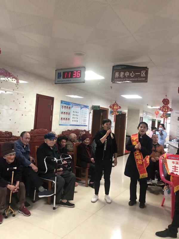 一大早,志愿者們就帶著慰問品來到養老院,并為養老院的老人們表演節目,用歌聲傳遞愛心。現場氣氛活躍,老人們還興致勃勃地和志愿者們聊天。看著老人們臉上露出孩子般的笑容,志愿者們都覺得心里暖暖的。 午餐時候,大家協助護工分發飯菜。飯后,老人們一直說:“我們不午睡,你們多留一會兒,我們還想聽你們唱歌!”志愿者們心頭一熱,沒有好聽的音響,就拿著手機,帶個音箱加話筒開始了表演。最后,志愿者們與老人們一起唱起《學習雷鋒好榜樣》等歌曲。