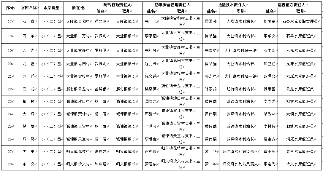 防汛安全管理、搶險(xiǎn)技術(shù)、巡查值守責(zé)任人名單