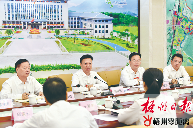 梧州零距離網-梧州日報訊 (記者 梁萍)9月27日上午,市委書記蔣連生到市十五屆人大一次會議蒼梧縣代表團,與代表們一起審議政府工作報告。蔣連生強調,蒼梧縣要貫徹落實市第十四次黨代會精神和這次市兩會精神,緊緊圍繞市委、市政府決策部署,緊扣“四個突出”重點發(fā)力,全力以赴抓好各項工作落實,努力在縣域經濟社會高質量發(fā)展上闖出新路子、形成新模式,在我市全力打造“一極三城”,建設“四個梧州”過程中走在前、作貢獻。 代表們對政府工作報告表示完全贊成,一致認為報告深入貫徹市第十四次黨代會精神,與黨代會報告一脈相承,切合發(fā)展實際,符合群眾期盼,內容豐富、重點突出、催人奮進。覃學海、孔斌、于翠平、譚愛云、莫檳瑋等代表,圍繞六堡茶產業(yè)發(fā)展、交通設施改善提升、林業(yè)產業(yè)轉型升級等話題踴躍發(fā)言,談認識、講思路、提建議。蔣連生認真傾聽,不時就一些具體問題同大家進行交流討論,現(xiàn)場氛圍十分活躍。