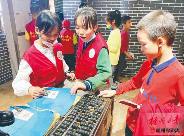 小記者們記錄梧州發展的故事。覃競儀 攝 在中共梧州地委·廣西特委舊址陳列館中,兩張沒有照片顯示的市委書記資料圖片,引起了小記者們的注意。“這是郭金水和陳啟東,因為當時拍照費用高昂,也為了隱藏黨員身份,以防被敵方識破,革命烈士們至死都沒有擁有一張屬于自己的照片。”講解員介紹道。小記者們頓時紅了眼眶,駐足許久。“革命烈士在艱苦的環境下頑強抗爭,革命精神深深感染著我們。”小記者林楚軒深情地說。