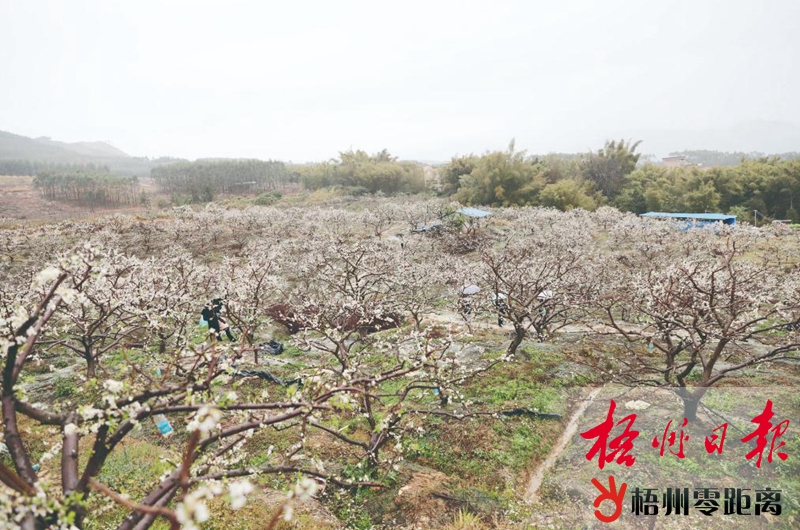 梧州零距離網-梧州日報訊 早春時節,李子樹進入盛花期。近日,筆者走進藤縣和平鎮陳塘村,看到村道旁、山坡上種滿李樹,目之所及都是潔白的李花。滿樹的花兒隨風搖曳,散發淡淡清香,引來不少群眾觀賞。據了解,這是該村村民許劍連的李子果園,果園面積50畝左右,李子每年產量約10萬公斤。