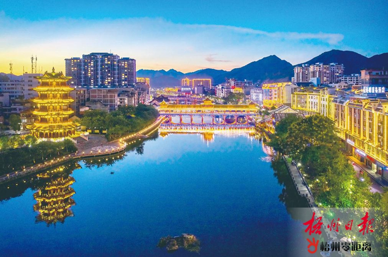 夜幕降臨,華燈初上,梧州各地霓虹閃爍,如同繁星散落人間,美輪美奐,繽紛絢爛——