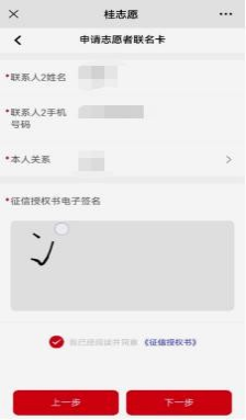 四、查詢制卡進度:再次點擊屏幕下方“我的”→點擊屏 幕中部“廣西注冊志愿者證——申領中”→選擇開戶行、“貸記卡”→點擊查詢。