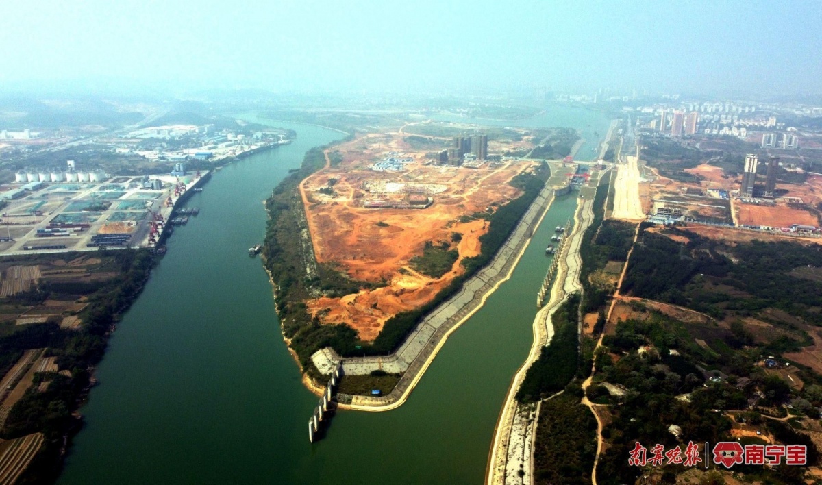 空中鳥瞰建設中的南寧牛灣文化旅游島