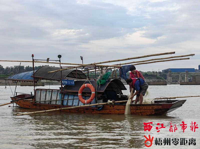 7月1日,漁民在長(zhǎng)洲水利樞紐壩前水域開展捕魚作業(yè)。西江都市報(bào)記者 陳益銘 攝