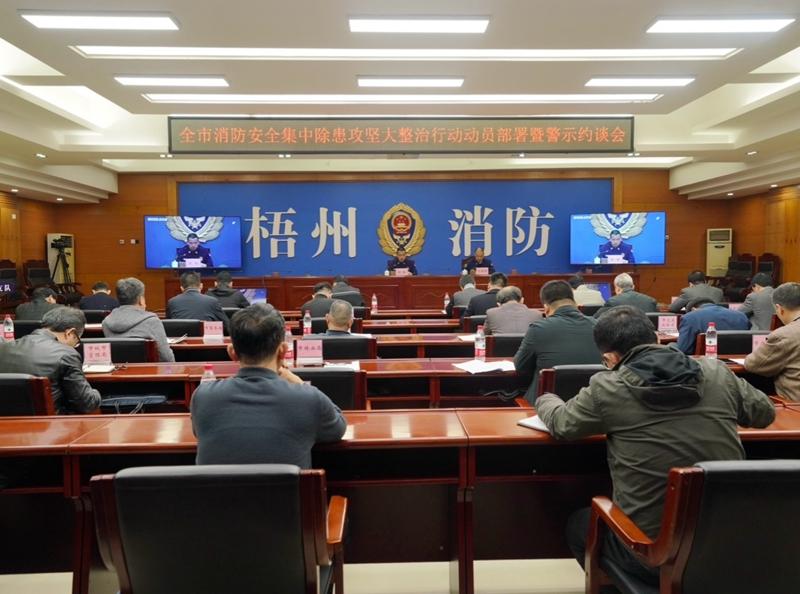 為督促全市各成員單位及重點單位,共同做好各領域消防安全工作,堅決確保全市火災形勢的持續穩定,2月2日,梧州市消防安全委員會辦公室組織召開全市消防安全集中除患攻堅大整治行動動員部署暨警示約談會。市消防安全委員會領導、市消防安全委員會各成員單位、各縣(市)區消安委各成員單位分管領導參加會議。